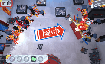 Because of the theme "10 Billion consumers", we decided to literally integrate the 10 billions consumers. Put on the boss's hat and regulate the crowds by using differents methods such as stands, surprise discounts and even smokes !